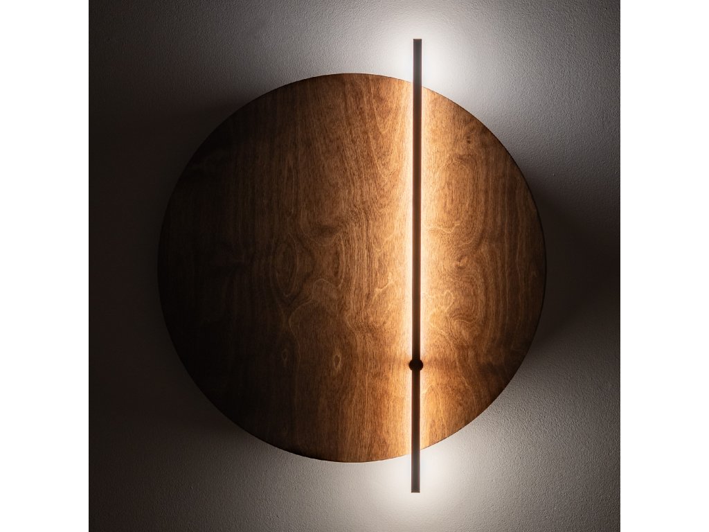 SUNSET D - Dizajnová LED nástenná okrúhla lampa, tmavé drevo