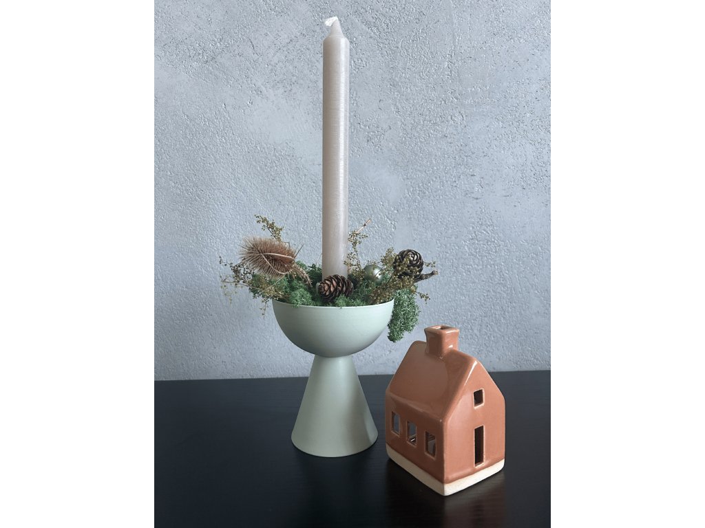 - dekoráciu zo stabilizovaného machu, sušených kvetov a rastlín s vianočným nádychom