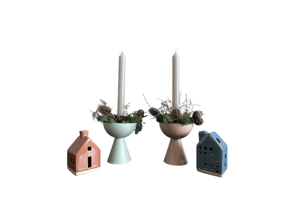 - kovový svietnik, farba ružová alebo zelená, priemer 10,5 cm, výška 12,5 cm