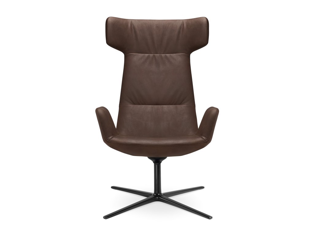 Dizajnové otočné kožené kreslo, čierna podnož, Lounge XL
